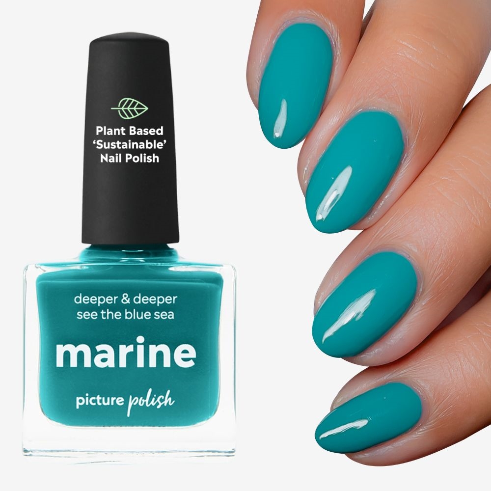 Marine er en støvet turkis grøn creme neglelak uden effekter. Meget populær.