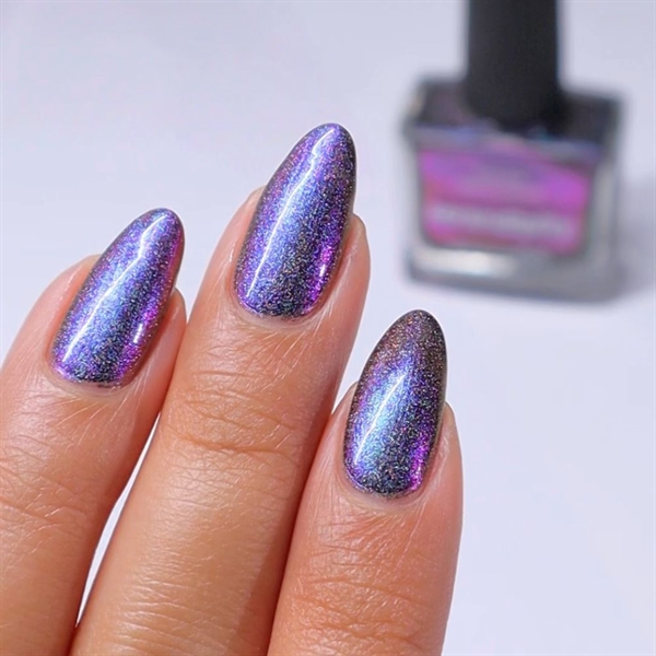 Serendipity er en holografisk chrome neglelak der skiftet smukt mellem grøn og orange. Den fede chrome effekt har samme effekt som du kender fra benzin. Serendipity er lækker at arbejde med på neglen og har en silke konsistens. Mums.
