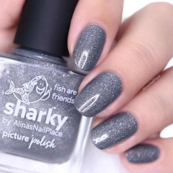 Sharky er en grå holografisk neglelak. De holografiske elementer er meget smukke i den koksgrå base Sharky har. Denne nuance er simpelthen så smuk, og er hurtigt blevet en af mine fortrukne neglelakker.